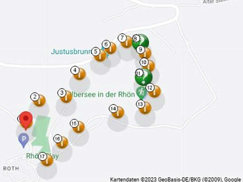 Spielstart ist an der Plattform gegenüber dem obersten Parkplatz.
